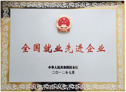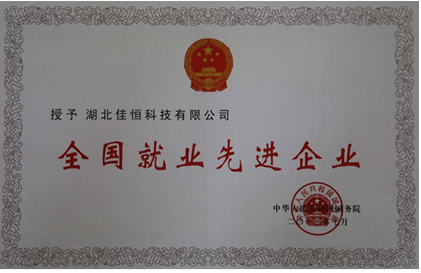 國務院授予湖北佳恒“全國就業(yè)先進企業(yè)”榮譽稱號稱號